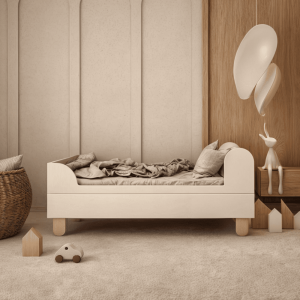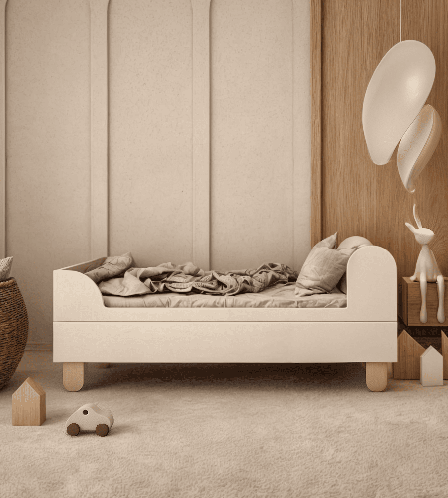 Krevet je izveden od MDF-a i nogice od bukvinog drva. Dimenzije su 84 x 165 x 71 cm, a preporučena dimenzija madraca 80x160, te visina 18-20 cm. Svi elementi bojani su vodenim lakom certificiranim u skladu sa sigurnosnom normom EN71/3 za dječji namještaj i igračke.