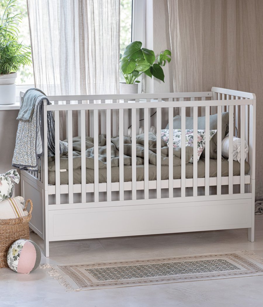 Krevetić je osmišljen da prati rast vašeg djeteta, s podnicom podesivom po visini u tri položaja. Kada je dijete dovoljno staro da može samostalno izlaziti iz kreveta, jedna strana krevetića lako se uklanja te se uz dodatne ogradice, koje dolaze uz krevet, pretvara u krevet za dijete vrtićkog uzrasta.  Kreveti je prilagođen veličini madraca 70 × 140 cm. Dimenzije krevetića su 145 x 75 x 101 cm. Izrađen u skladu sa sigurnosnom normom EN71/3 za dječji namještaj i igračke, proizvedeno prema PN-EN 716-1 + A1: 2013, EN 716-2 + A1: 2013 – u pogledu očuvanja odgovarajućeg razmaka između elemenata, čvrstoće i završne obrade (zaobljeni rubovi i kvaliteta materijala korištenih u izradi).