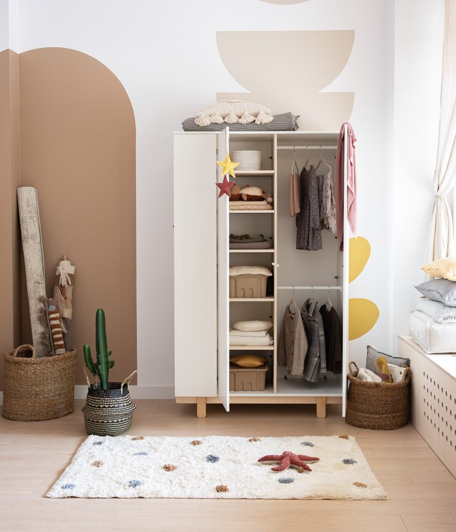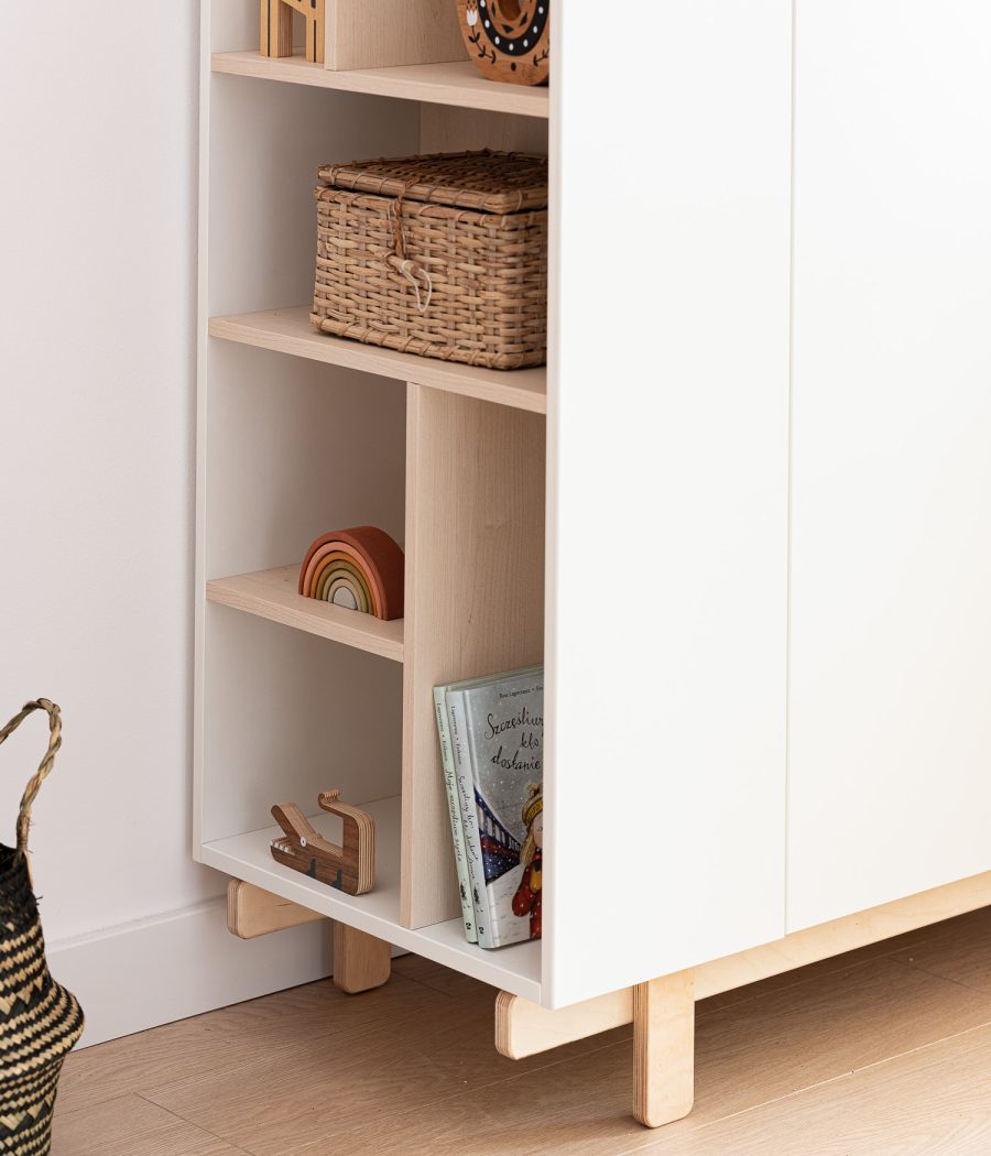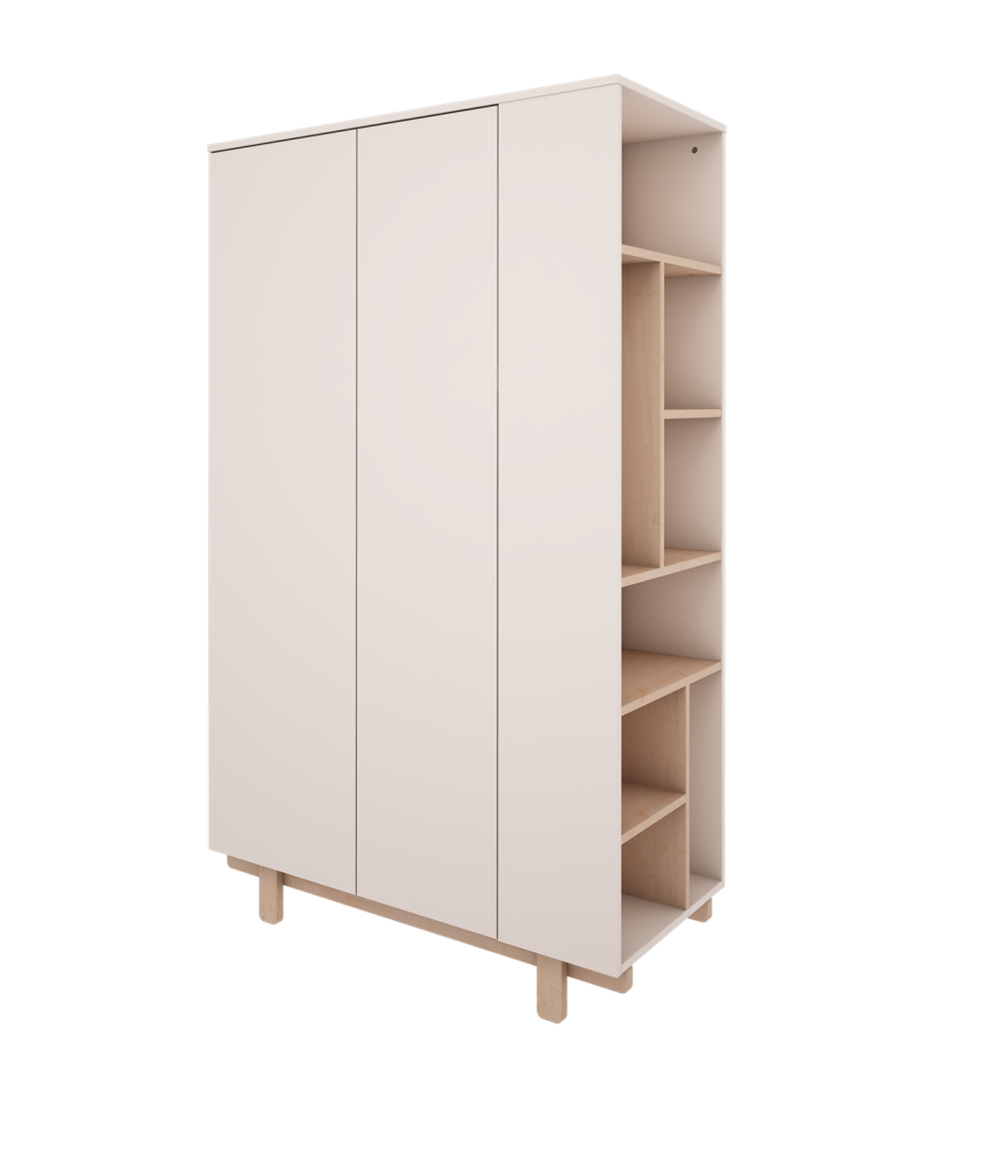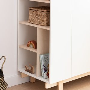 Ladice i vrata ormara opremljeni su vrlo kvalitetnim samozatvarajućim vodilicama i pantima. Dimenzije 115 x 53 x 190 cm. Ormar je izrađen od lameliranih ploča, a nogice od drva breze. Proizveden u skladu sa sigurnosnom normom EN71/3 za dječji namještaj i igračke, svi elementi bojeni su vodenim lakom certificirani za usklađenost sa EN71/3 sigurnosnom normom.
