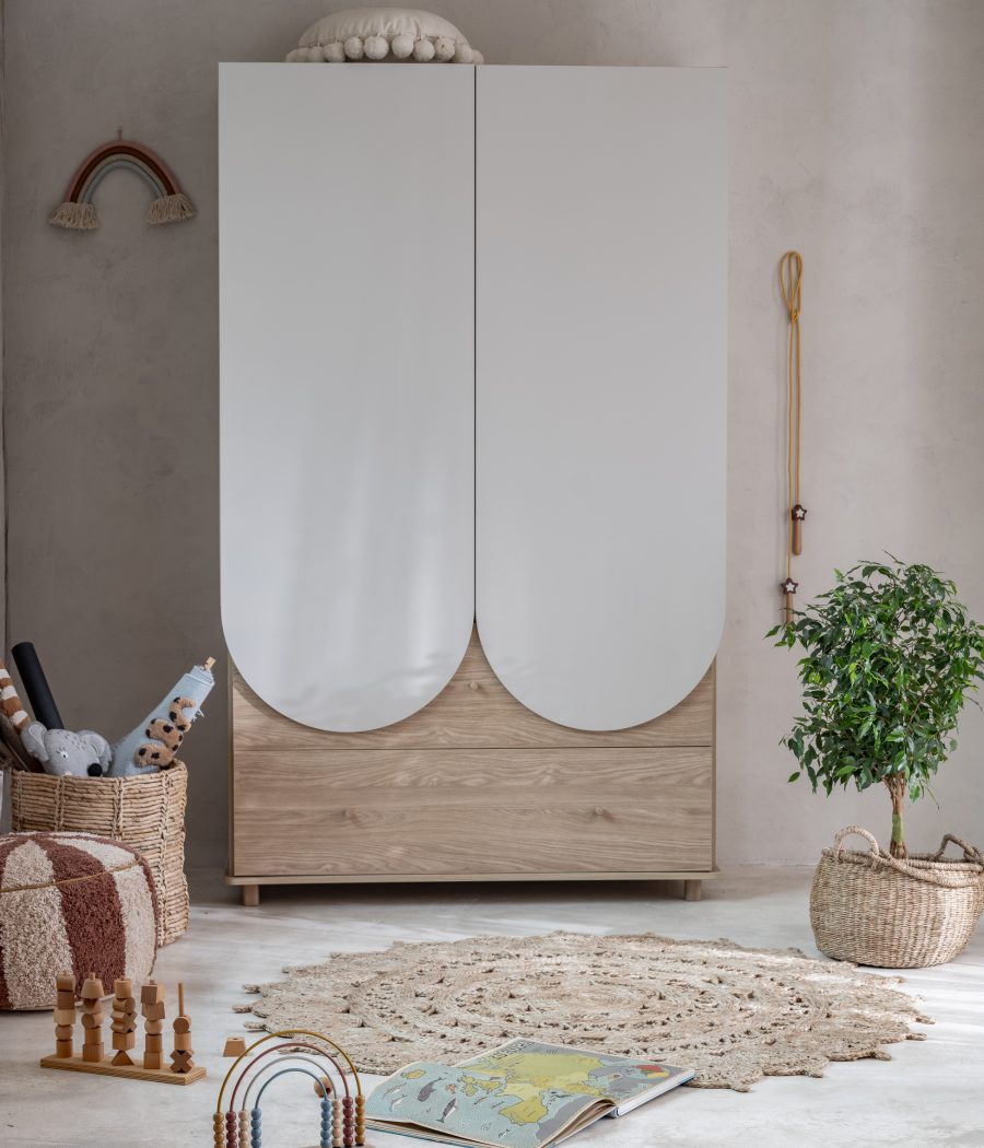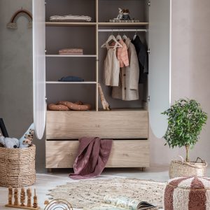 Ladice i vrata ormara opremljeni su vrlo kvalitetnim samozatvarajućim vodilicama i pantima. Dimenzije su 120 x 52 x 200 cm. Ormar je izrađen od MDF-a, lameliranih ploča te nogice od bukvinog drva. Proizvedeno u skladu sa sigurnosnom normom EN71/3 za dječji namještaj i igračke, te bojeno vodenim lakom certificirani za usklađenost sa EN71/3 sigurnosnom normom.