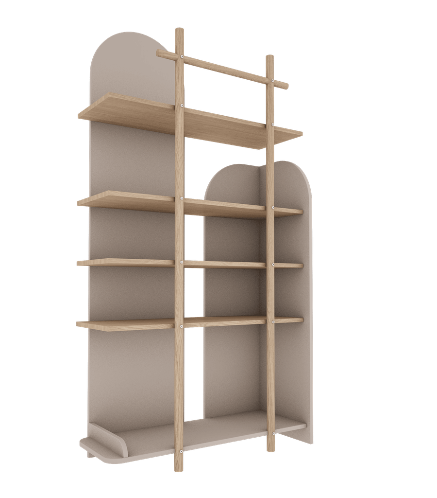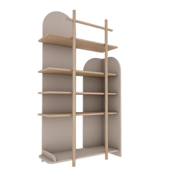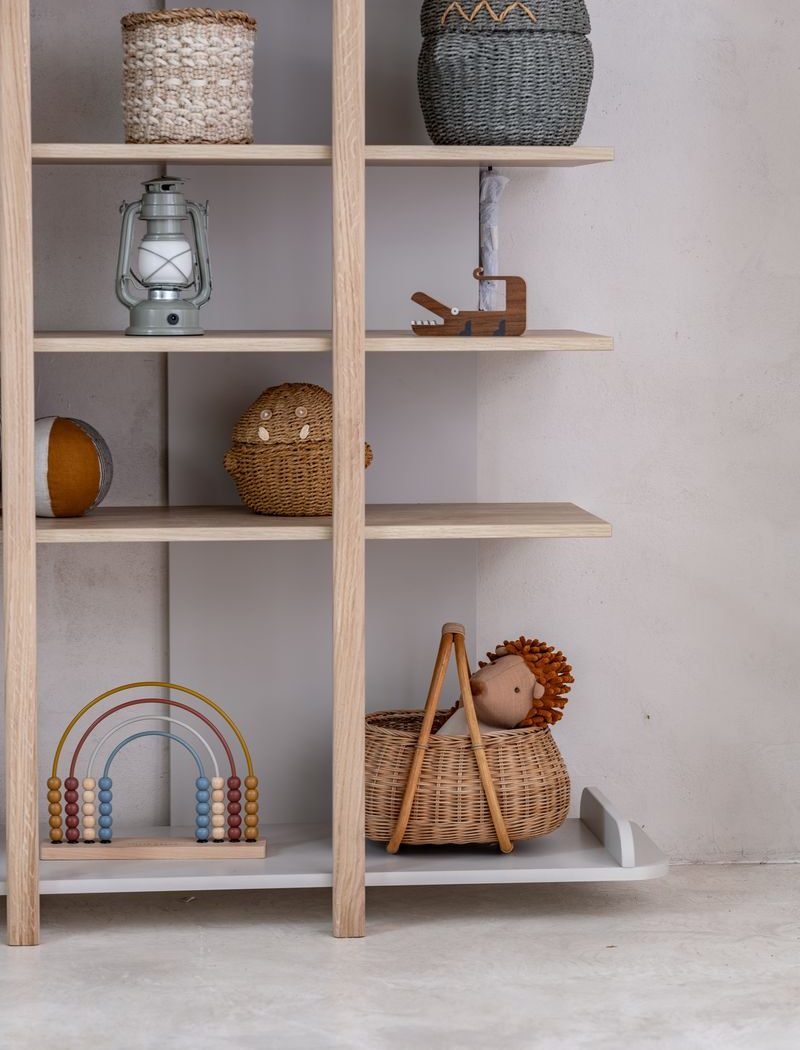 Polica ima pet prostranih horizontalnih polica. Izrađena je od MDF-a, lameliranih ploča te nogice od bukvinog drva. Proizvedeno u skladu sa sigurnosnom normom EN71/3 za dječji namještaj i igračke.