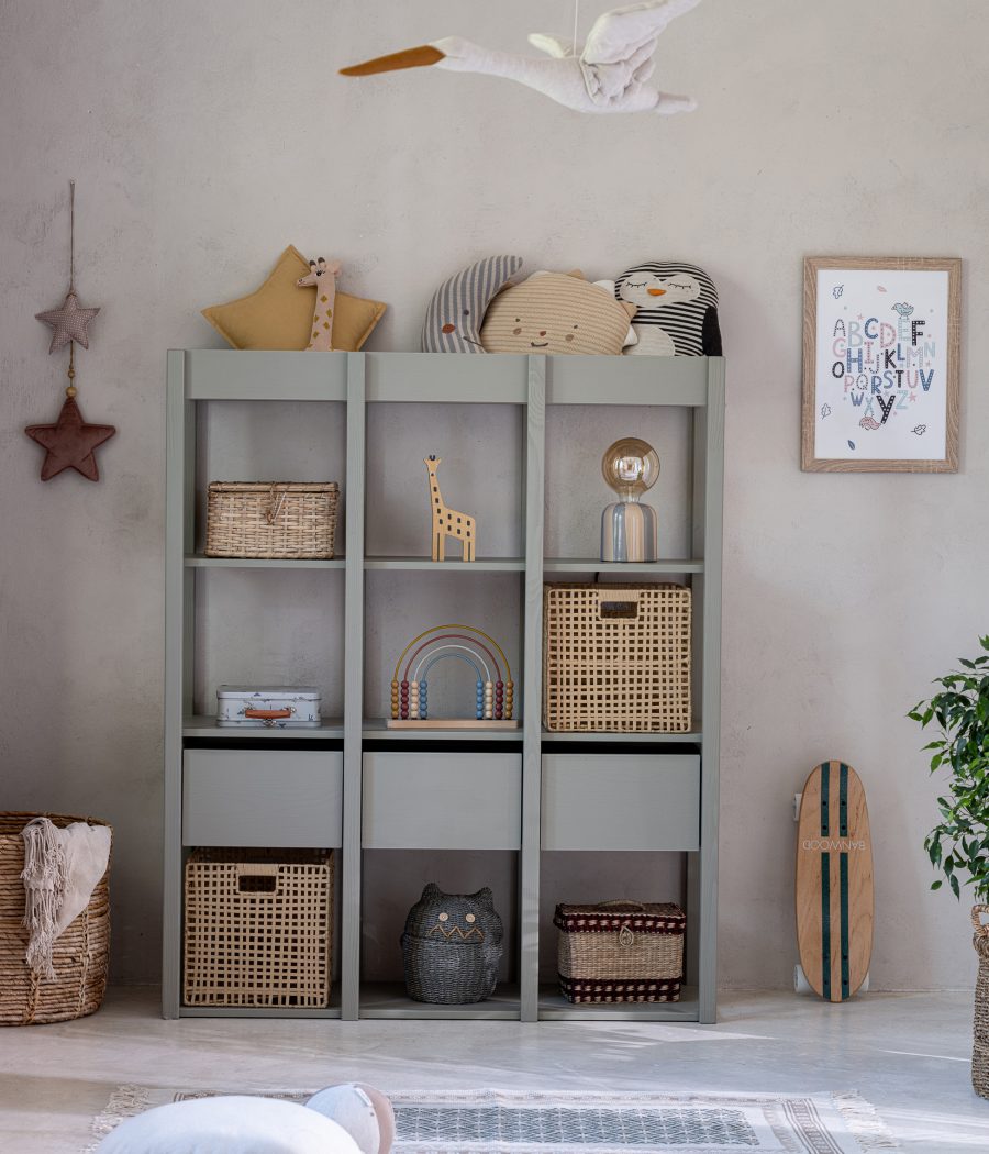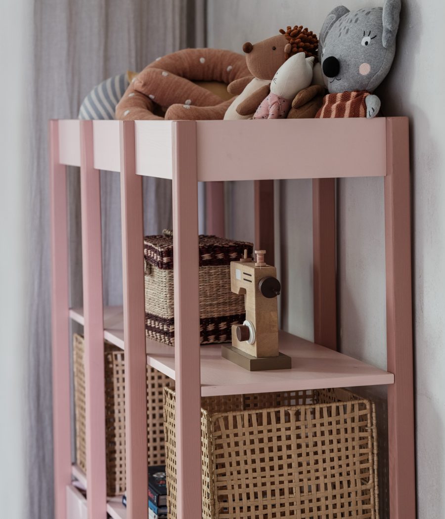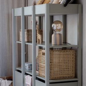 Polica Tweens ima tri duboke ladice koje su opremljene vrlo kvalitetnim samozatvarajućim vodilicama. Dimenzije police su 115 x 41 x 138 cm. Izrađena je od lameliranih ploča i borova drva, a  proizvedena u skladu sa sigurnosnom normom EN71/3 za dječji namještaj i igračke.