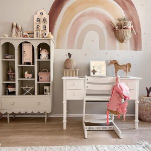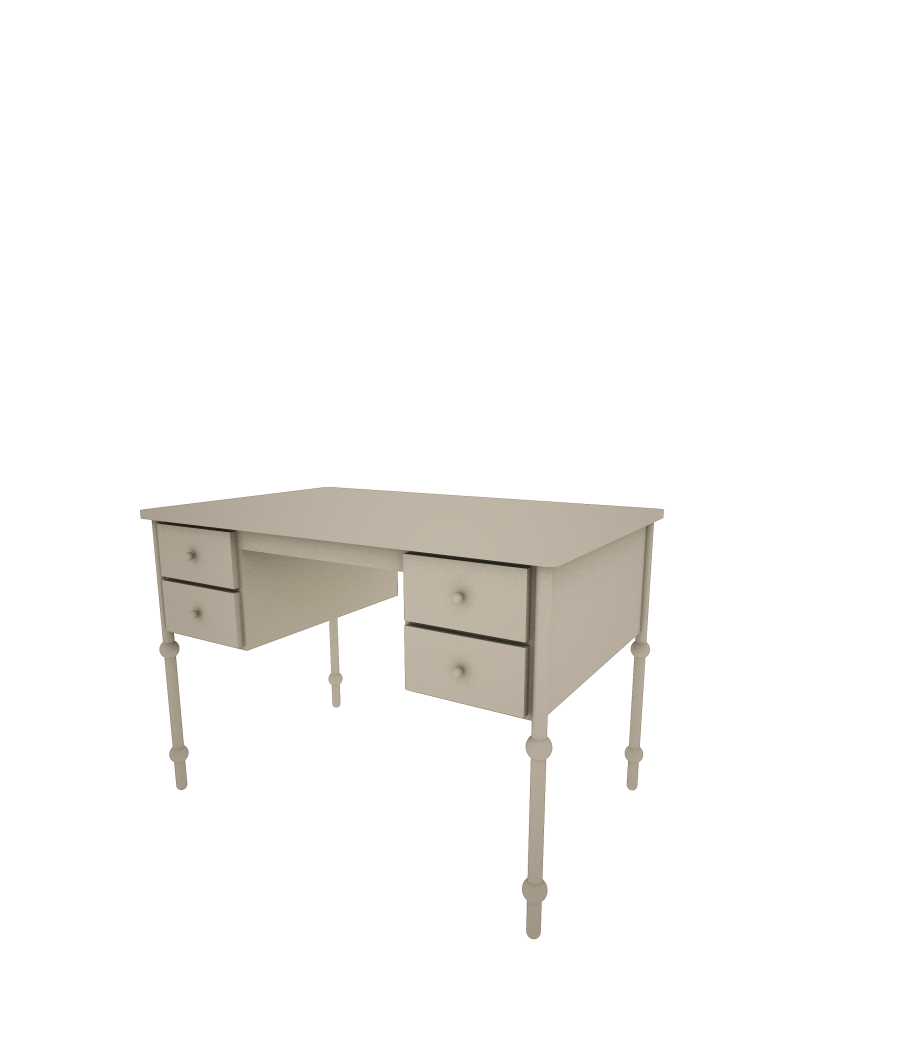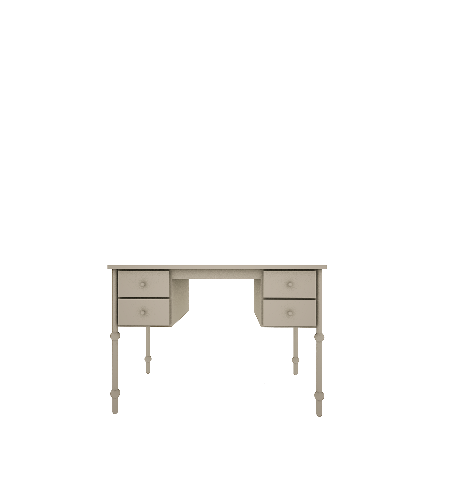 Radni stol Babushka izrađen je od  lameliranih ploča,a nogice od bukvinog drva. Ima četiri prostrane ladice opremljene vodilicama za samozatvaranje. Preporučamo korištenje podloga za pisanje kako bi ploča stola što dulje ostala u dobrom stanju. Dimenzije stola su 113 x 65 x 75 cm. Svi elementi bojani su vodenim lakom certificiranim za usklađenost sa EN71/3 sigurnosnom normom.