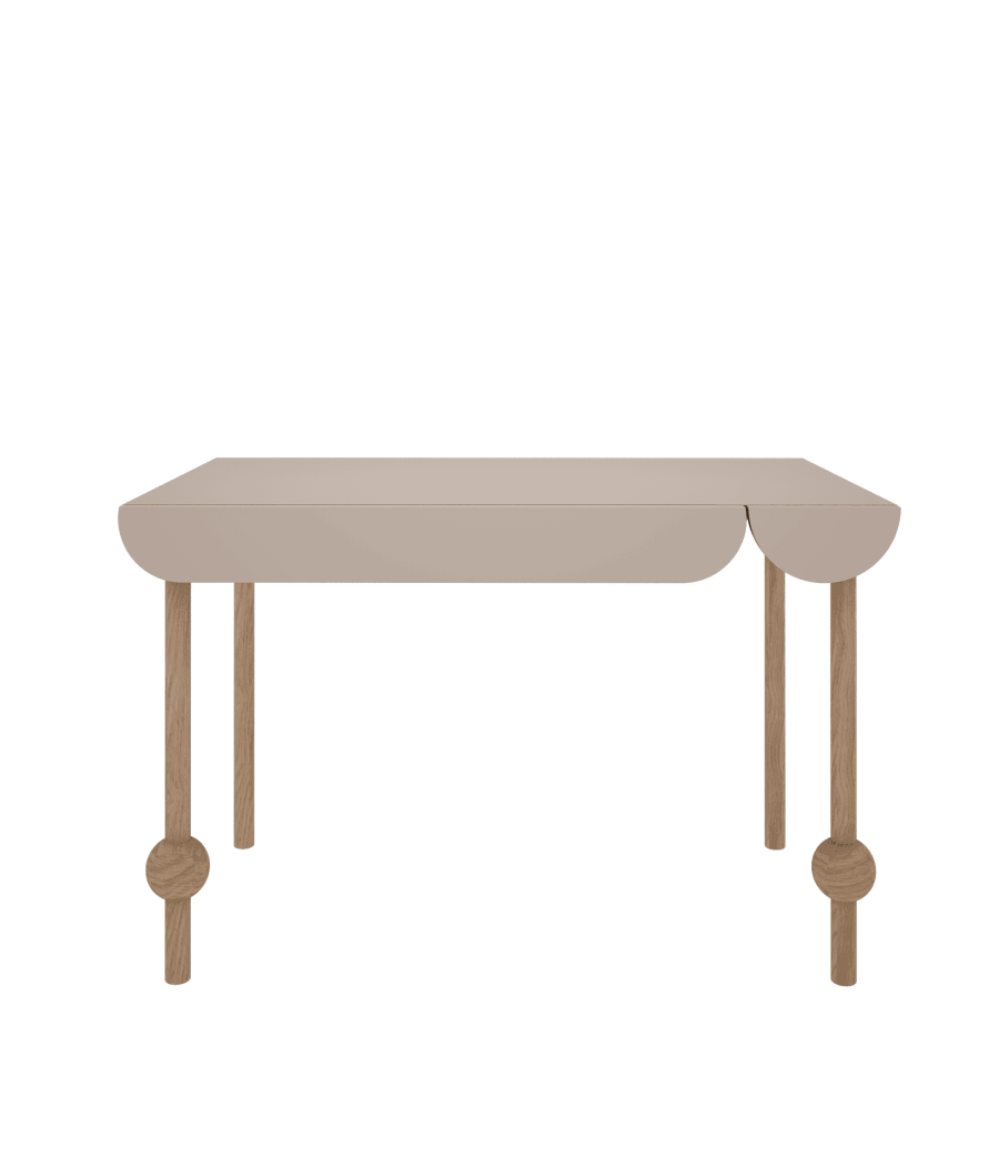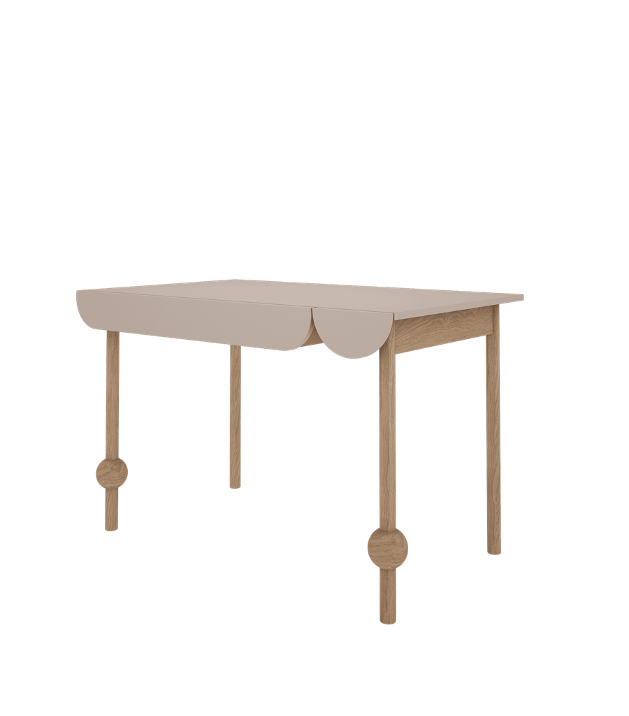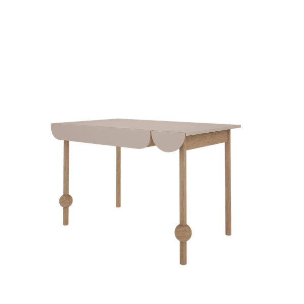 Radni stol Bloom izrađen je od lameliranih ploča i drveta hrasta. Ima dvije ladice opremljene vodilicama za samozatvaranje. Preporučamo korištenje podloga za pisanje kako bi ploča stola što dulje ostala u dobrom stanju. Dimenzije stola su 120 x 72 x 77 cm. Svi elementi bojani su vodenim lakom certificiranim za usklađenost sa EN71/3 sigurnosnom normom.