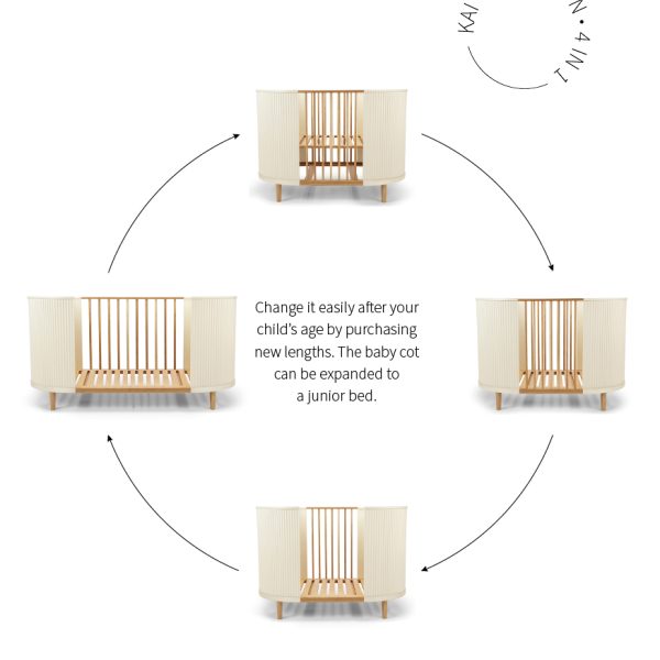 Kada dijete preraste krevetić, možete brzo i jednostavno ukloniti podnicu i bočnu stranu, i povećati krevetić sa produžnim setom. Na taj način u nekoliko trenutaka krevetić postaje krevet dug 150 cm i prati dijetov rast kroz nekoliko godina. Set sadrži tri dijela.