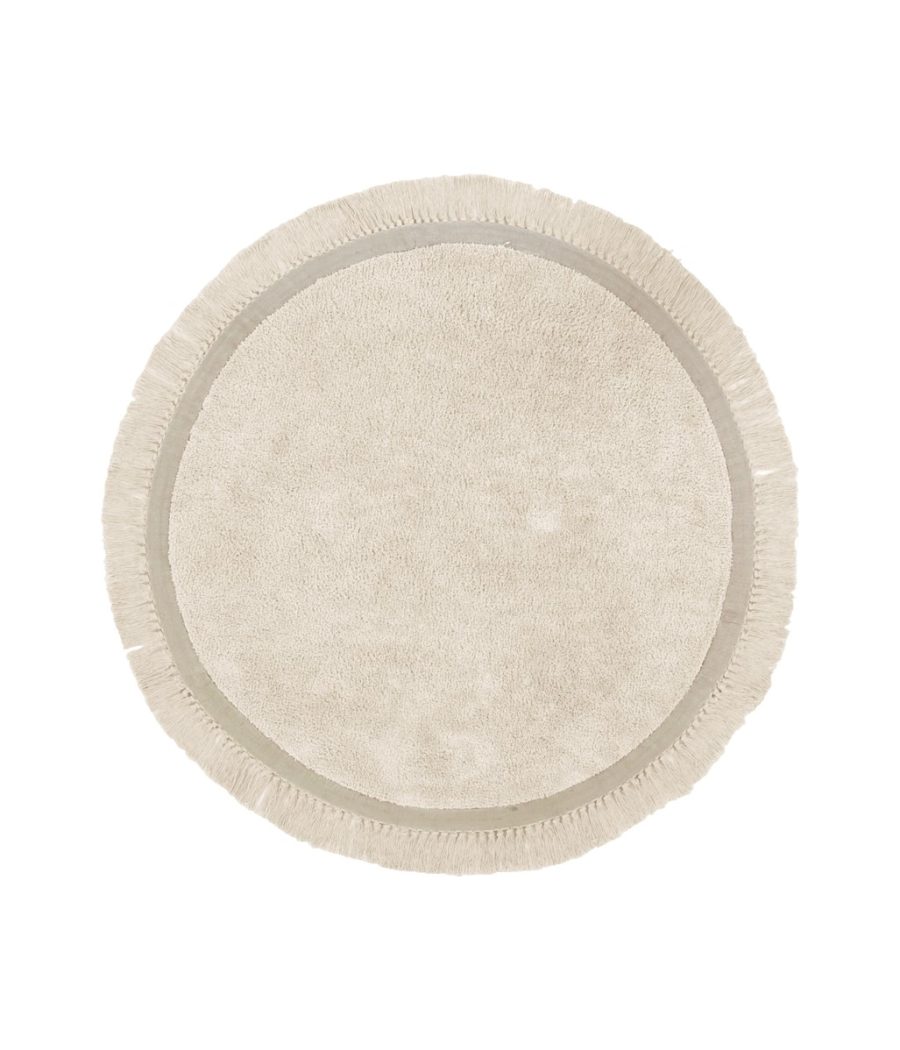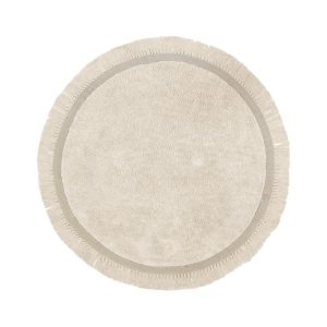 Ručno izrađen od recikliranog pamuka. Na početku korištenja mogu se pojaviti sitne dlake, koje su vlakna iz samog procesa, a tepih će se postupno sve manje i manje osipati i na kraju prestati. Promjer tepiha je 130 cm.
