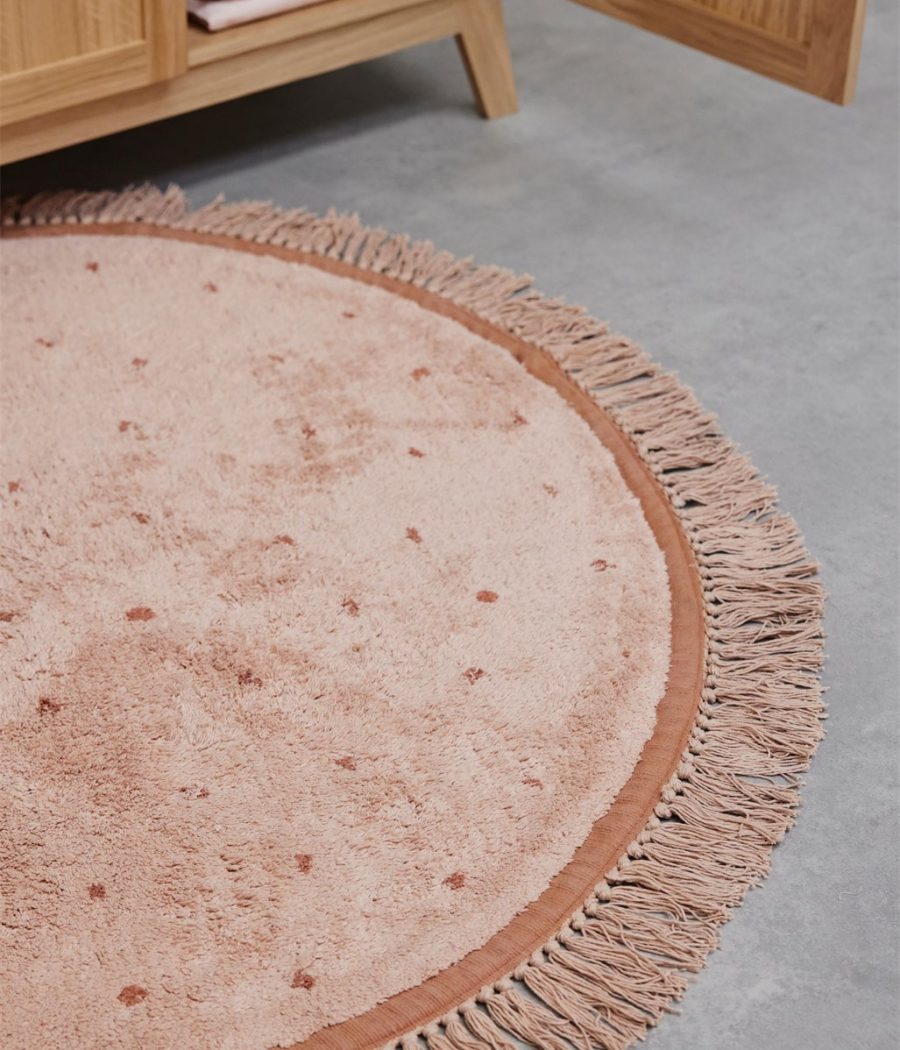 Okrugli tepih ružičaste boje omiljen je dodatak svake djevojačke sobice.