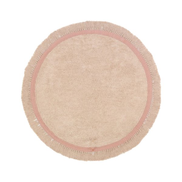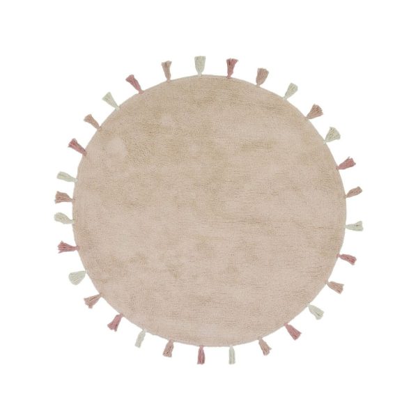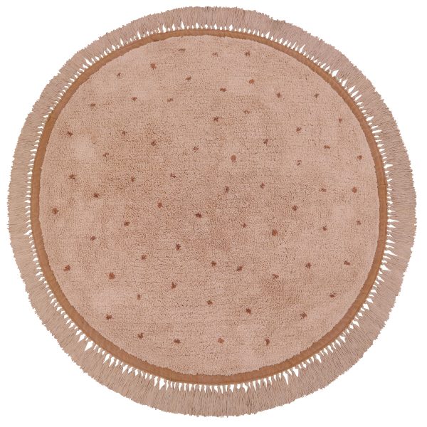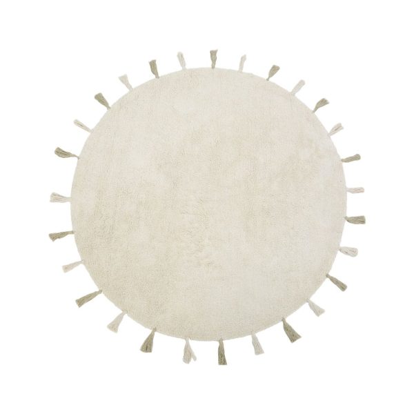 Ručno izrađen od recikliranog pamuka. Na početku korištenja mogu se pojaviti sitne dlake, koje su vlakna iz samog procesa, a tepih će se postupno sve manje i manje osipati i na kraju prestati. Promjer tepiha je 120 cm.