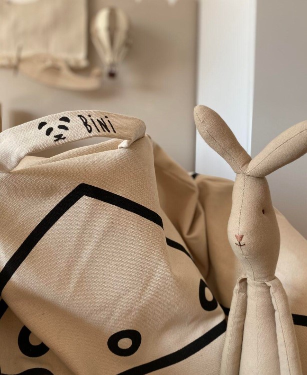 Pamučna vreća za sjedenje - lagana djeci za nošenje tijekom igre a dovoljno podupiruća odraslima za udobno sjedenje. Izrađena od mekanog pamuka, unosi udobnost u svaku prostoriju. Dimenzije vreće promjer 80 cm, visina 110 cm. Navlaka: Izrađena od 100% pamuka. Oeko-Tex 100 i CE certifikat, koji jamče da je bez štetnih tvari. Unutarnja navlaka: izrađena od 100% poliestera, dizajnirana za jednostavnu promjenu navlake bez curenja kuglica. Umetak: izdašno ispunjen 100% prozračnim EPS kuglicama koje se prilagođavaju pokretima tijela.