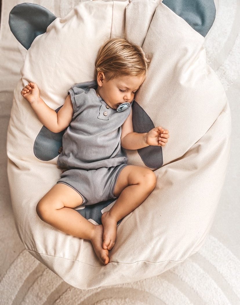 Pamučna vreća za sjedenje - lagana djeci za nošenje tijekom igre a dovoljno podupiruća odraslima za udobno sjedenje. Izrađena od mekanog pamuka, unosi udobnost u svaku prostoriju. Dimenzije vreće promjer 80 cm, visina 110 cm. Navlaka: Izrađena od 100% pamuka. Oeko-Tex 100 i CE certifikat, koji jamče da je bez štetnih tvari. Unutarnja navlaka: izrađena od 100% poliestera, dizajnirana za jednostavnu promjenu navlake bez curenja kuglica. Umetak: izdašno ispunjen 100% prozračnim EPS kuglicama koje se prilagođavaju pokretima tijela.